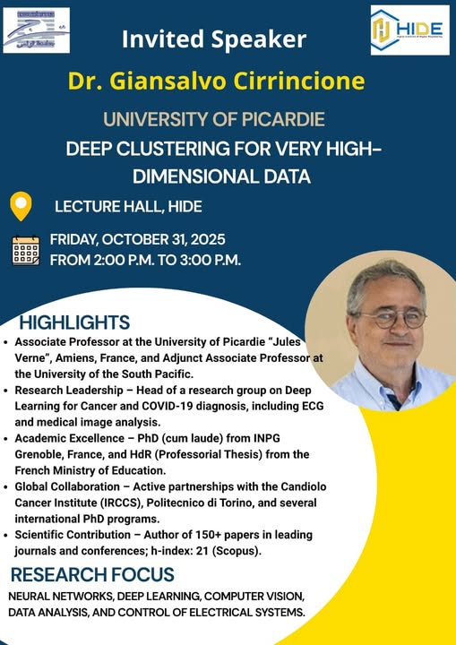 On 31 October 2025, the institute will welcome Dr Giansalvo Cirrincione from Picard University, France, who will give a lecture entitled: